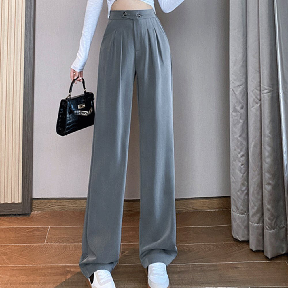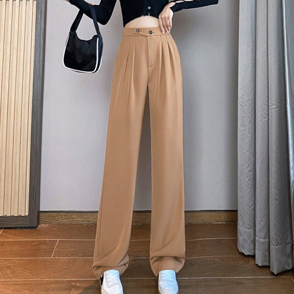 High Waist Drape Loose Straight Casual Slim Wide Leg Suit Pants