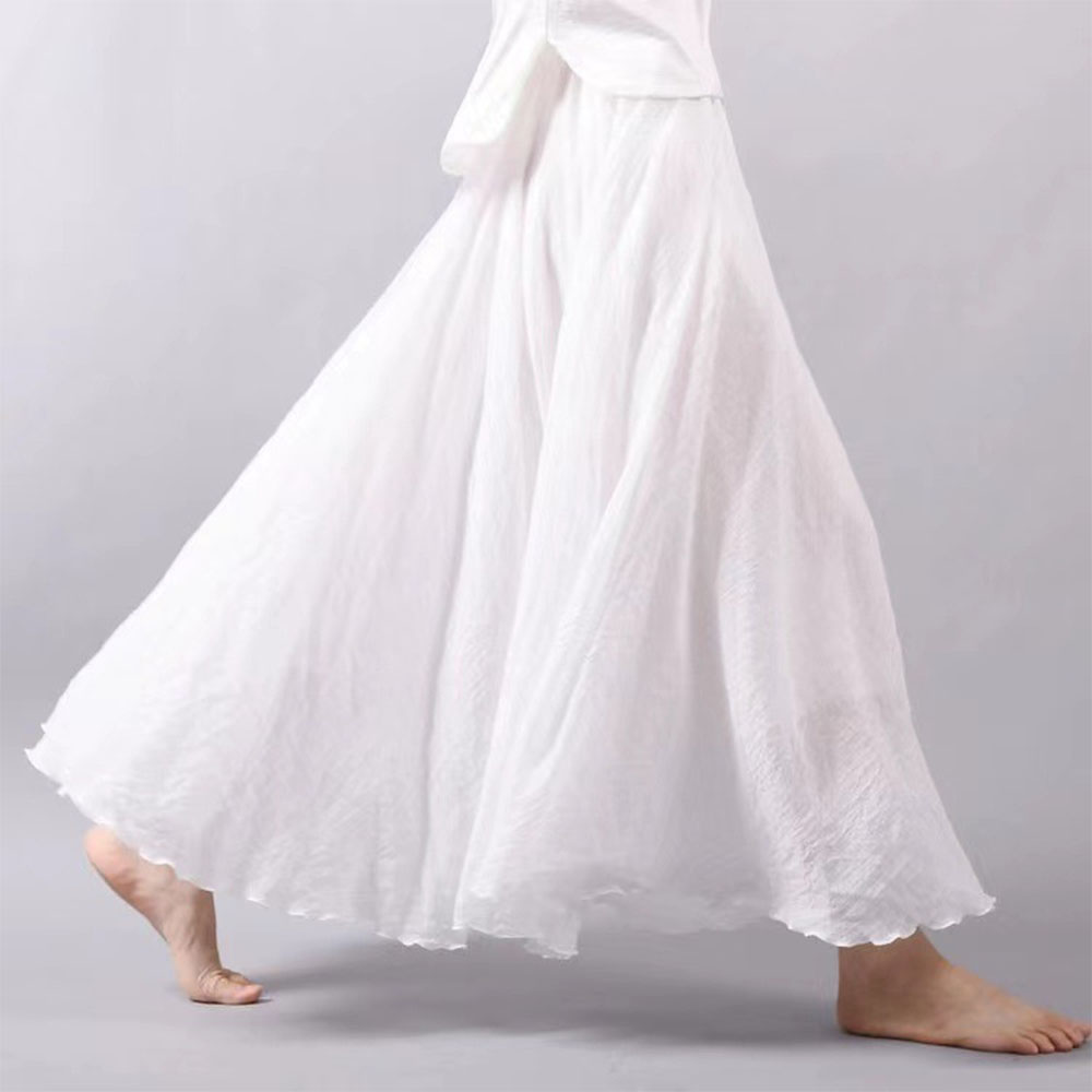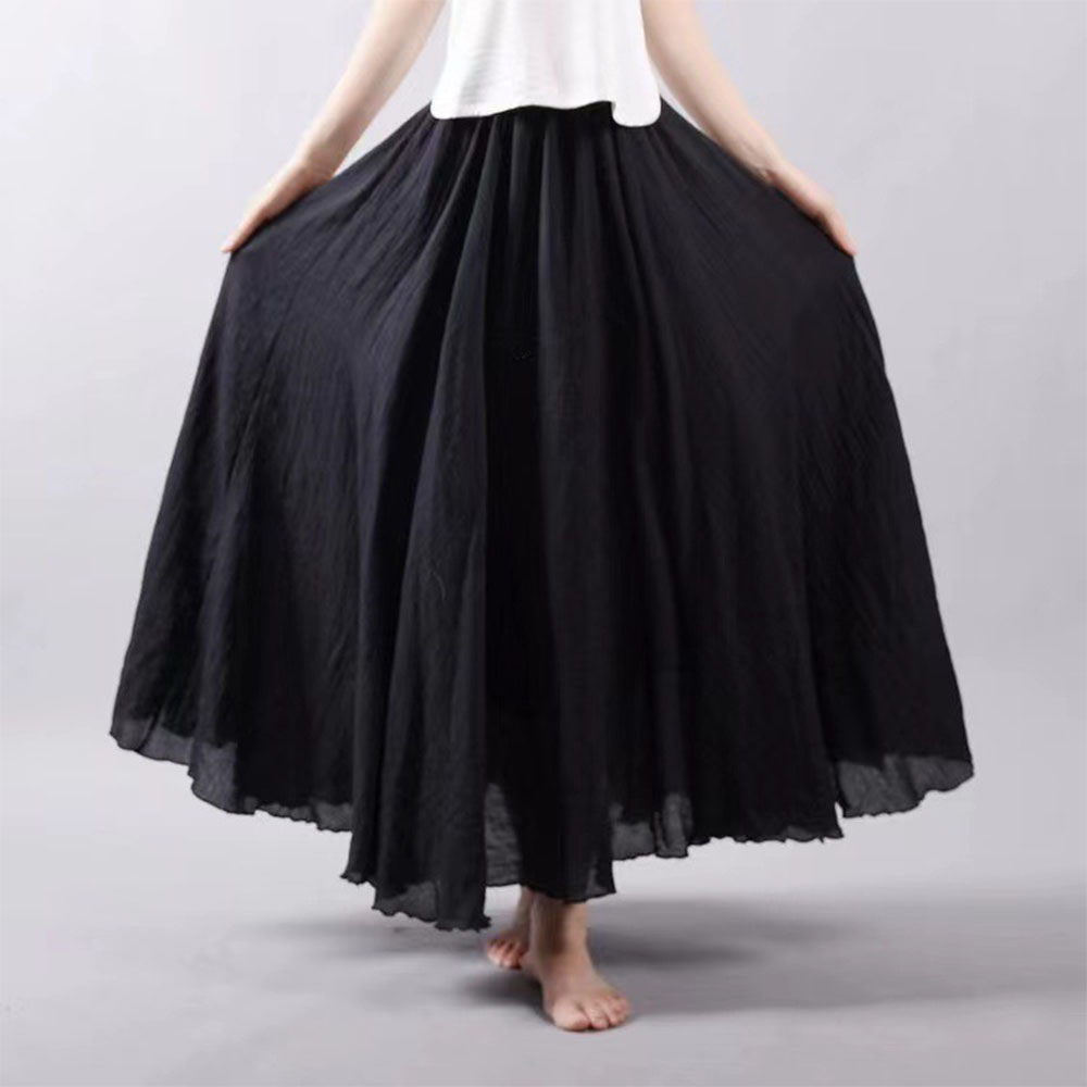 Literary Large Size Cotton And Linen Elastic Waist Half Body A-line Large Swing Skirt