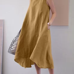 Round Neck Sleeveless Cotton And Linen Vest Dress