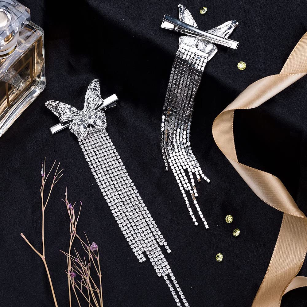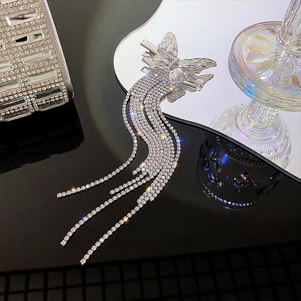 Butterfly Rhinestone Tassel Hair Clip