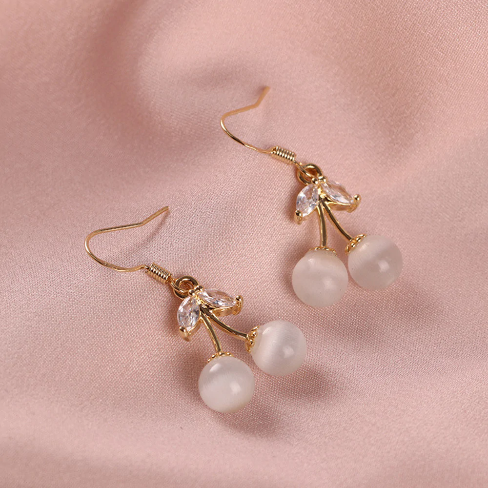 Cat’s Eye Stone Cherry Earrings