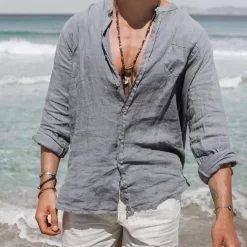 Men’s Grey Cotton Linen Loose Shirt