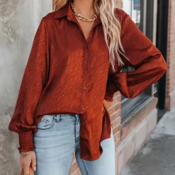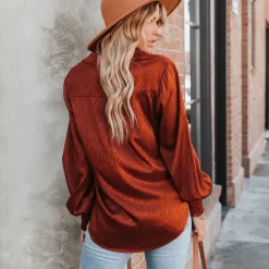 Women’s Elegant Satin Lapel Long Sleeve Shirt