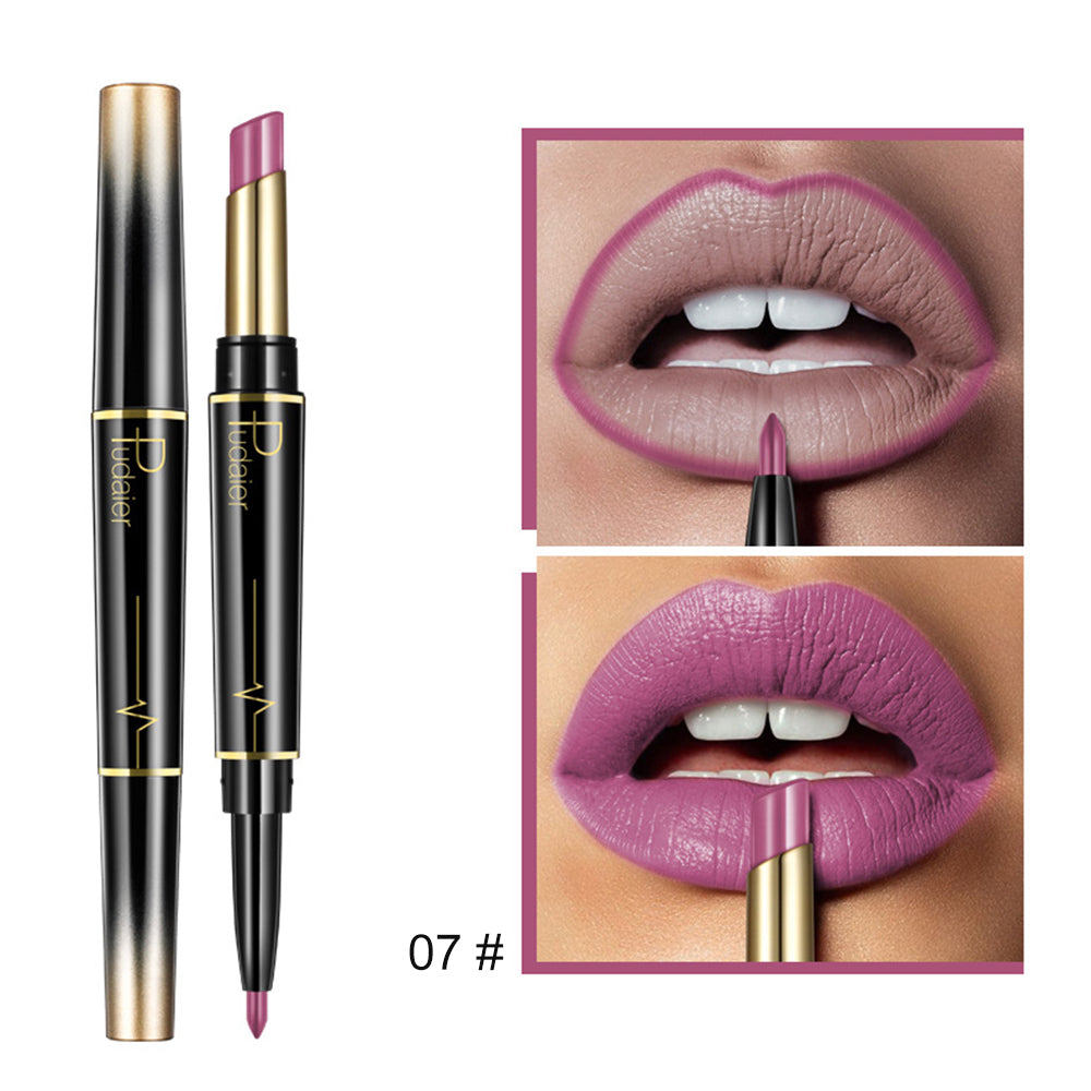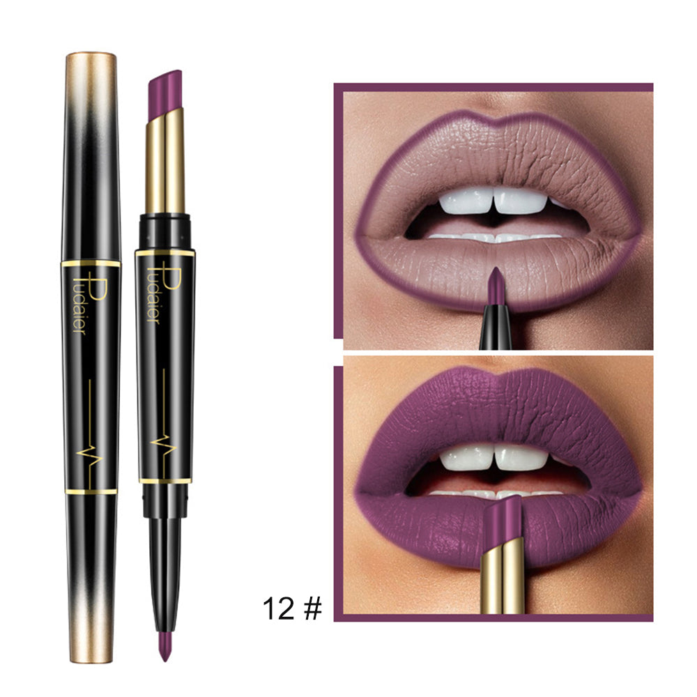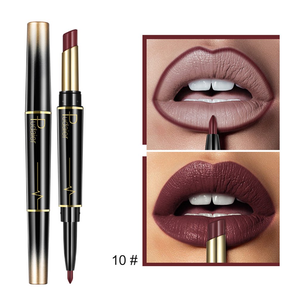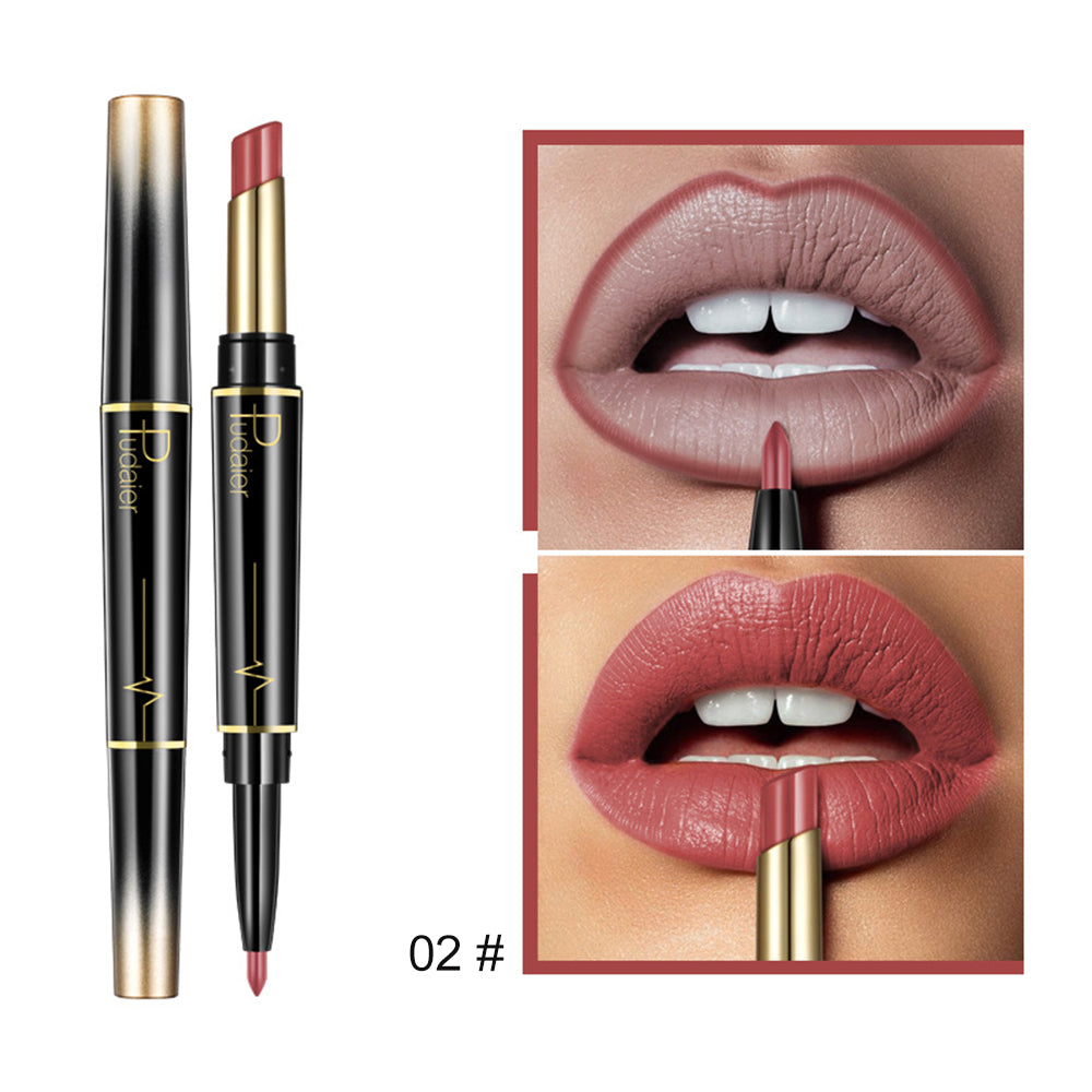 - It has two heads with a lipstick on one side and a lip liner on the other side.