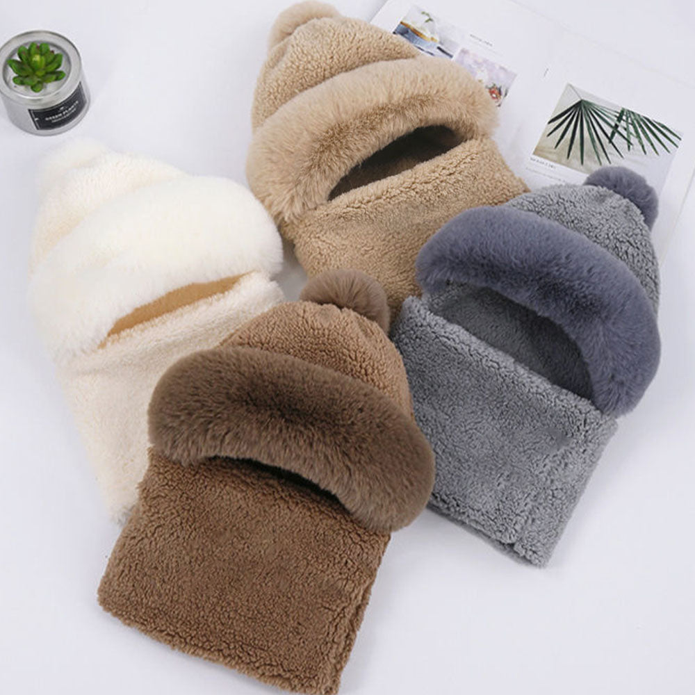 - 1*3 In 1 Winter Plush Windproof Scarf Hat
