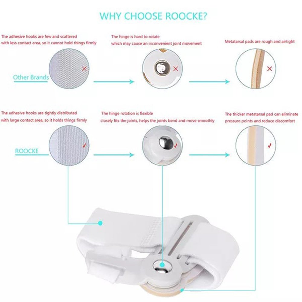 The bunion corrector brace also helps maintain surgical fixation of the big toe after hallux valgus surgery. The set is recommended for men and women. for night and day. for indoor and outdoor. for hallux valgus deformity. wrong position of the big toe. overlapping toe and crooked toe.