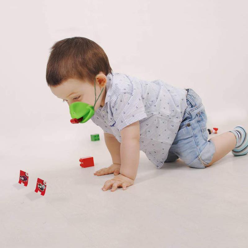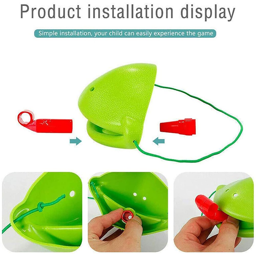 Both players in thissuperblyfun gamewear chameleon mouthmasks complete with extending red tongues.Similar to a party blower.puffing into the plastic tongue unfurls it for a quick strike.