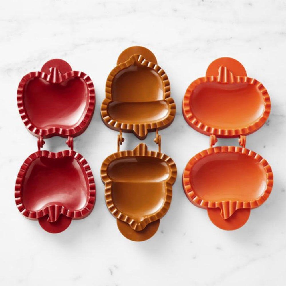 Expand your fall baking repertoire with pocket pies in festive apple. pumpkin and lattice shapes. Our hinged molds make it easy to cut and seal rolled-out dough into neat hand pies. stuffed with your favorite sweet or savory fillings.