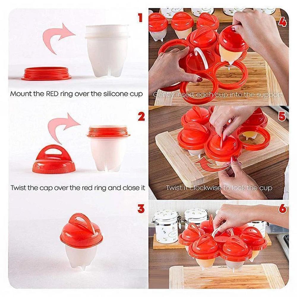 The perfect hard-boiled egg cooker without the shell. BPA Free non-stick silicone pods make cooking eggs easier than ever! Easy to use. just sprayed oil in a cup and wiped to evenly distribute. crack open the eggs. pour into an egg cooker. boil and pop eggs out of the cup.