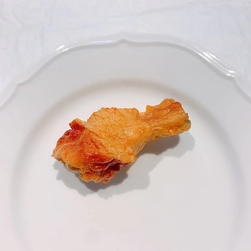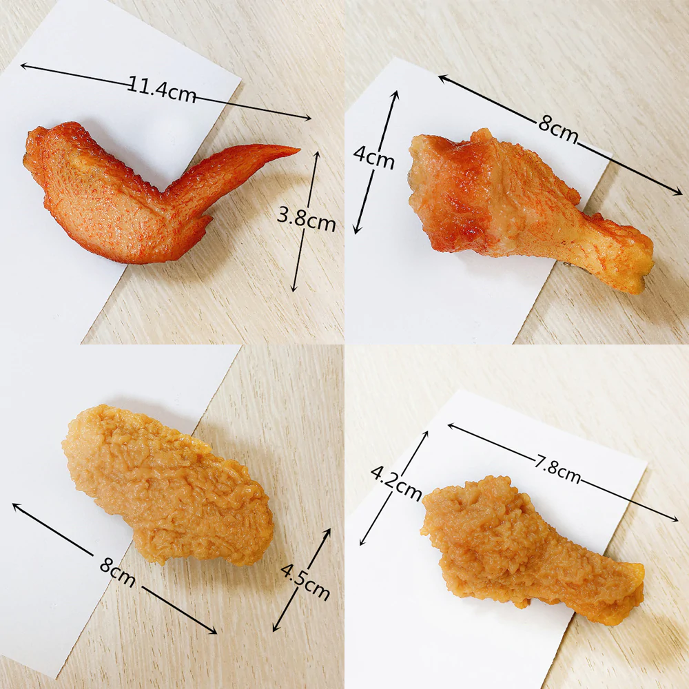 3D simulation fried chicken legs. chicken wings. French fries shape. the shell is crispy. looks very lifelike. and makes people’s eyes dizzying.