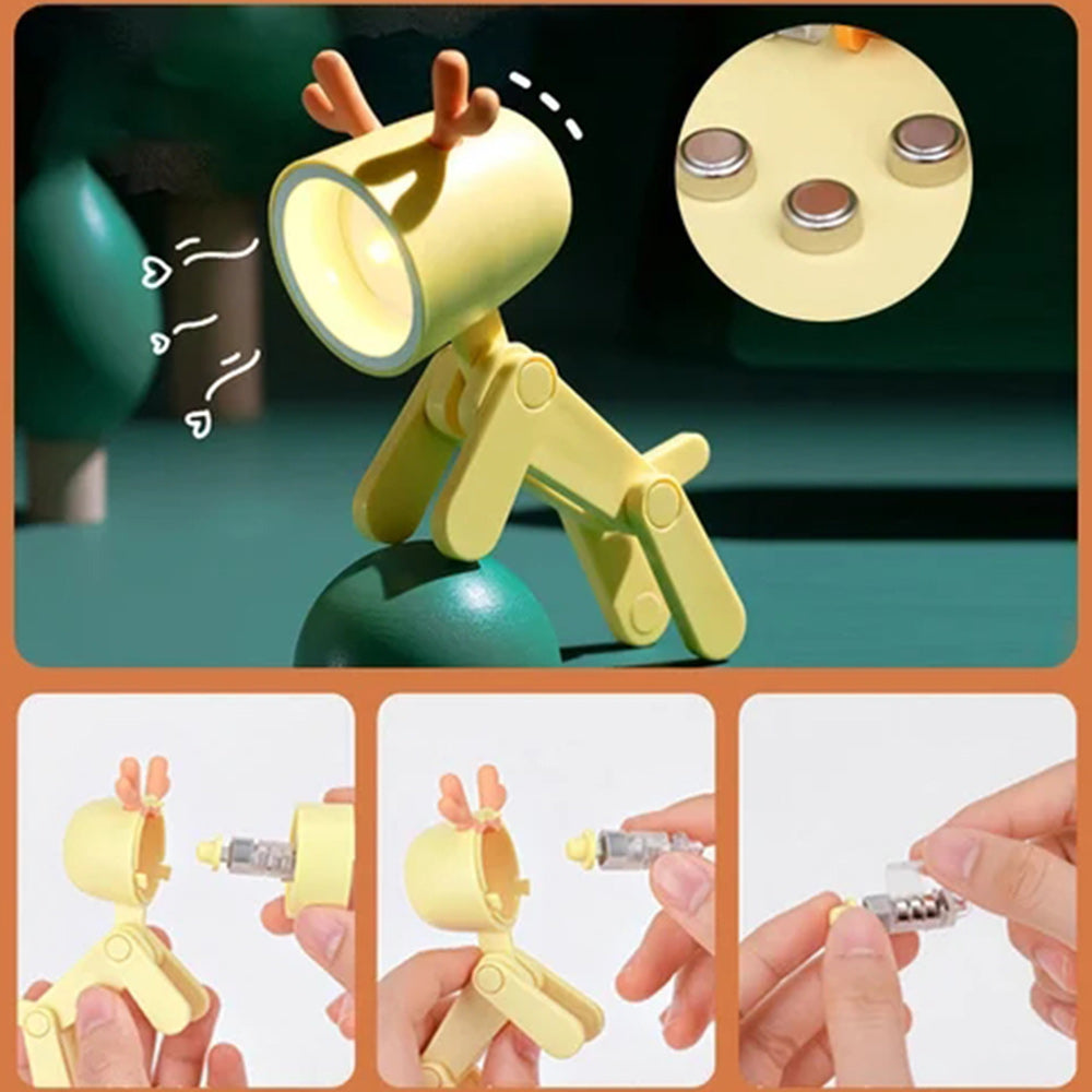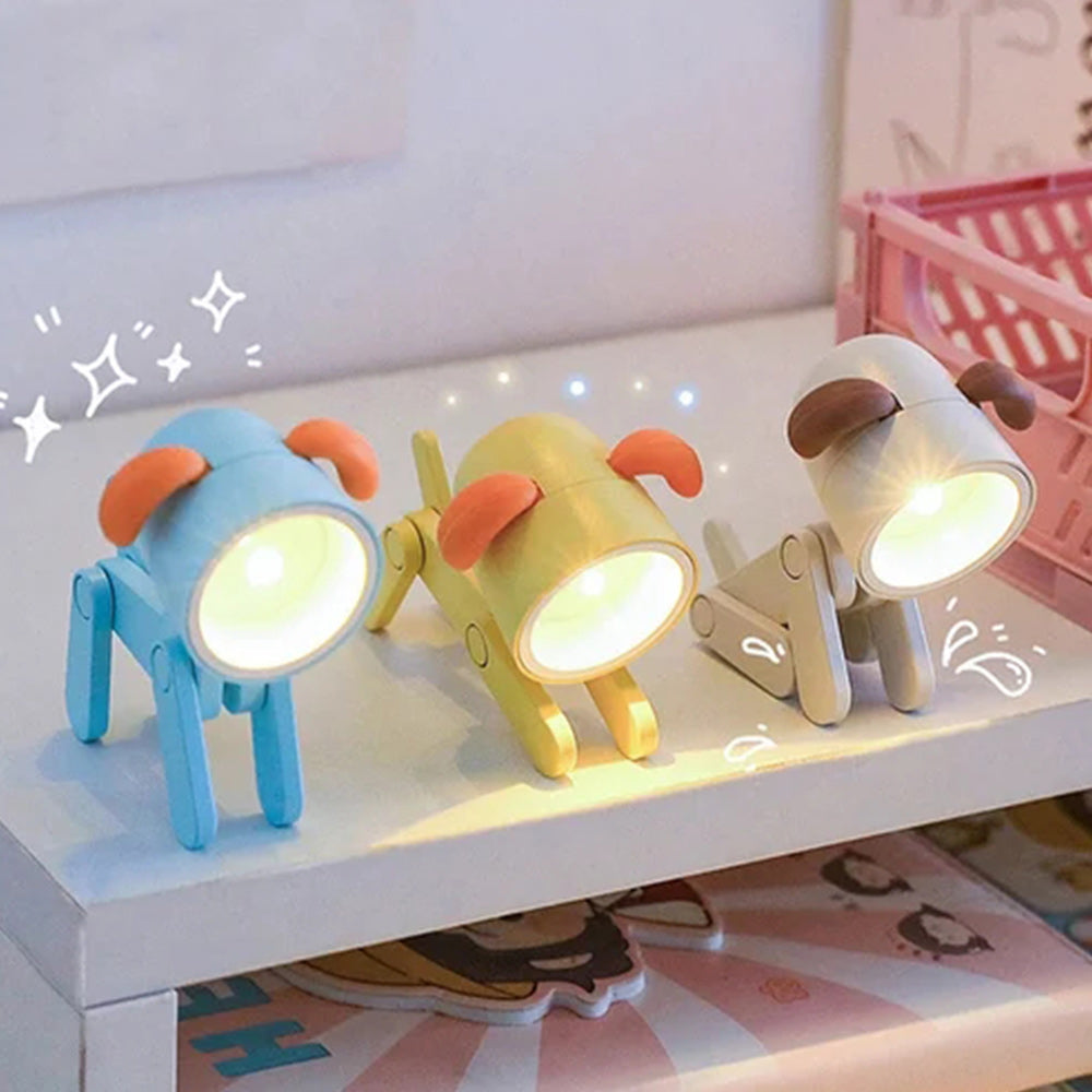 The puppy light is relatively light. You can adjust the puppies head as needed. and you can easily adjust the light angle. All four feet are adjustable too. you can adjust freely to place items. or as a Use mobile phone holder.