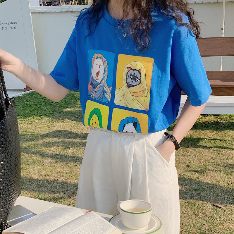 - This T-shirt is printed with a cat pattern. four expressions. full of personality. Cartoon pattern. full of youthful atmosphere. versatile and fashionable.