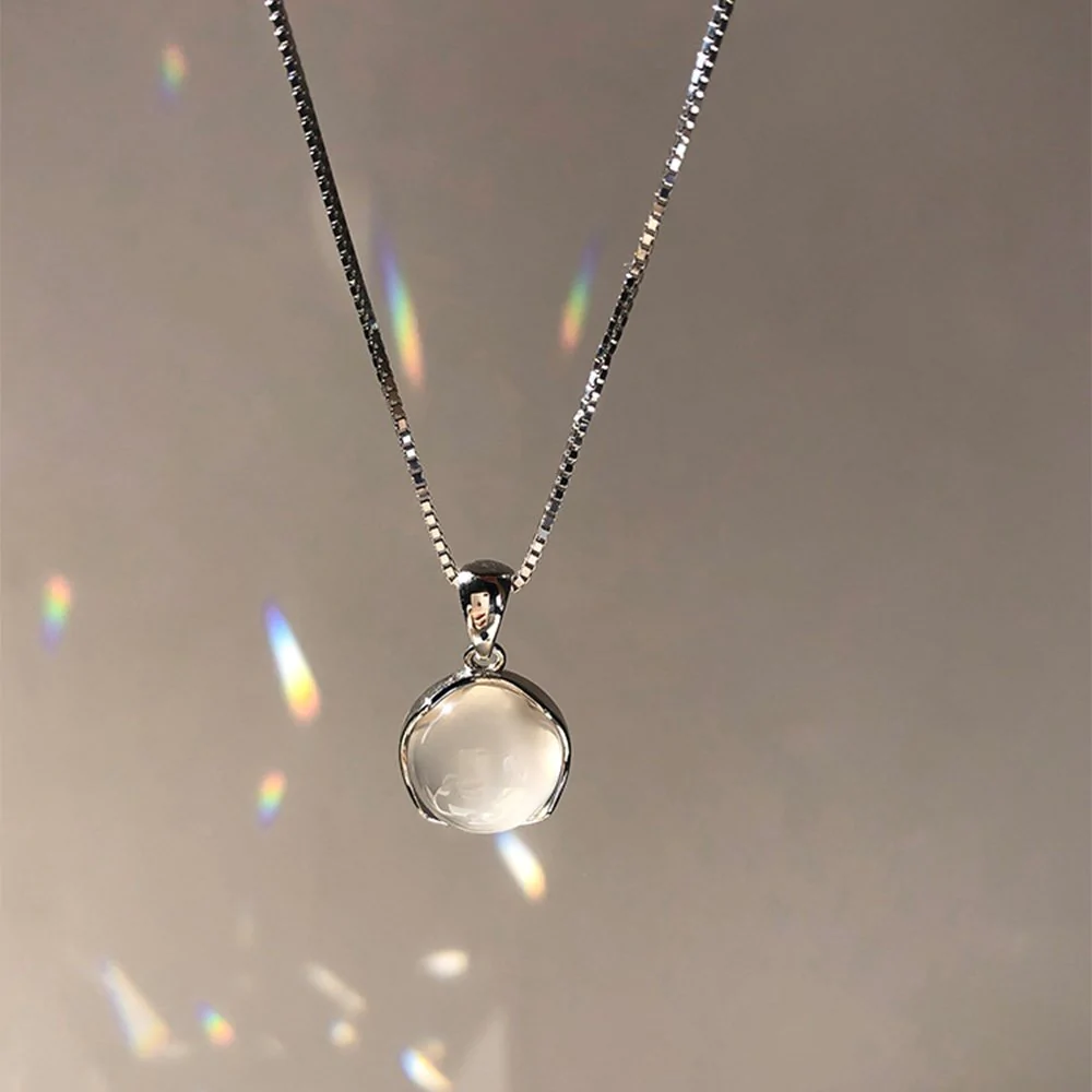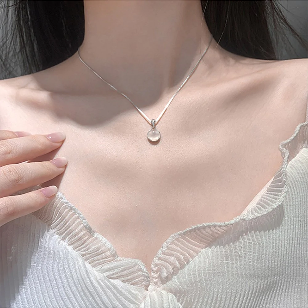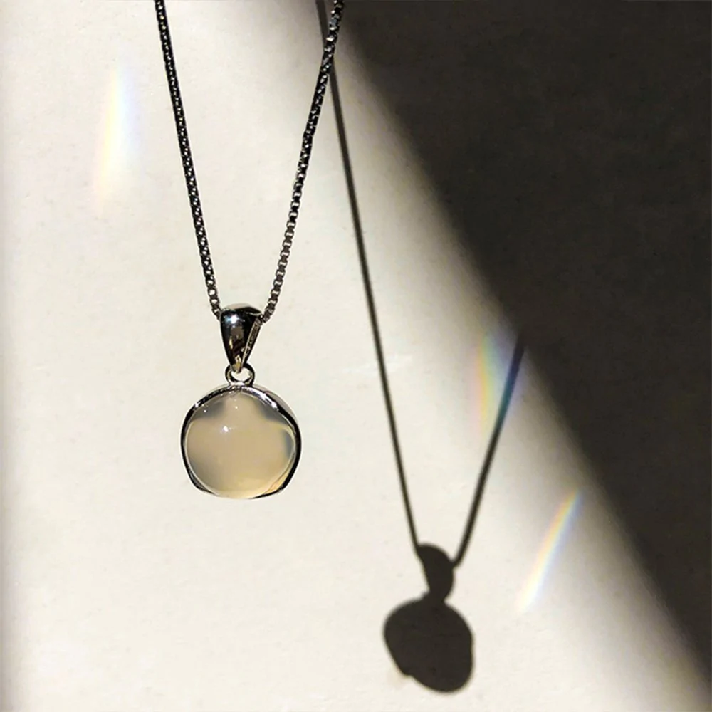 • 1*Luxury White Chalcedony Round Pendant Necklace