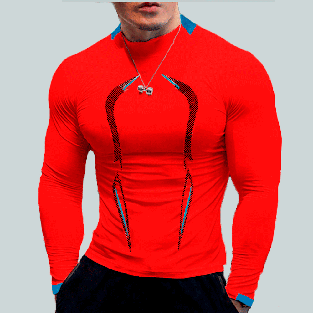- 1* Men Sports Round Neck Long Sleeve Elastic Quick Drying Fitness Top