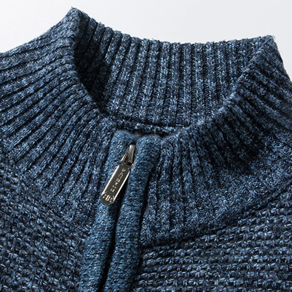 Men’s Stand-up Collar Striped Plaid Zipper Knitted Jacket Coat