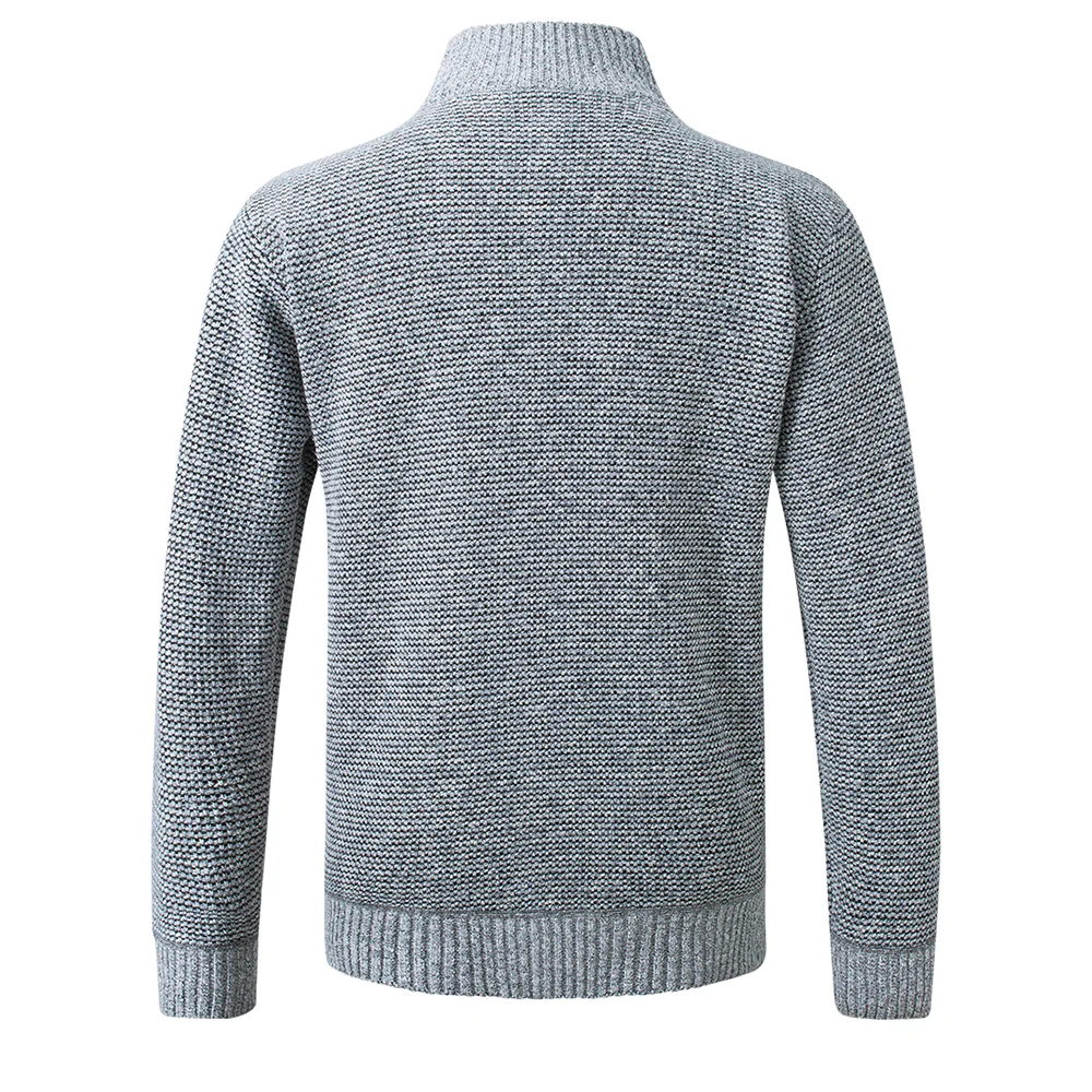 • 1*Men’s Stand-up Collar Striped Plaid Zipper Knitted Jacket Coat