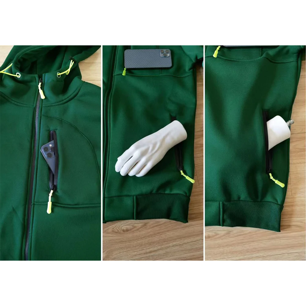 - Design: Long sleeves. hooded. solid color. loose fit. zipper closure. pockets. exquisite workmanship. Fashionable and versatile. it is a must-have in a man’s wardrobe.