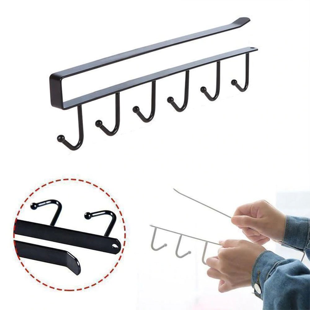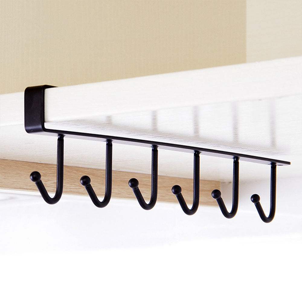 Our Cabinet Hook Shelf is ideal for hanging coffee cups or cooking utensils. The shelf slides over any standard shelf and provides six sturdy hooks for cups. dishes and other kitchen products.