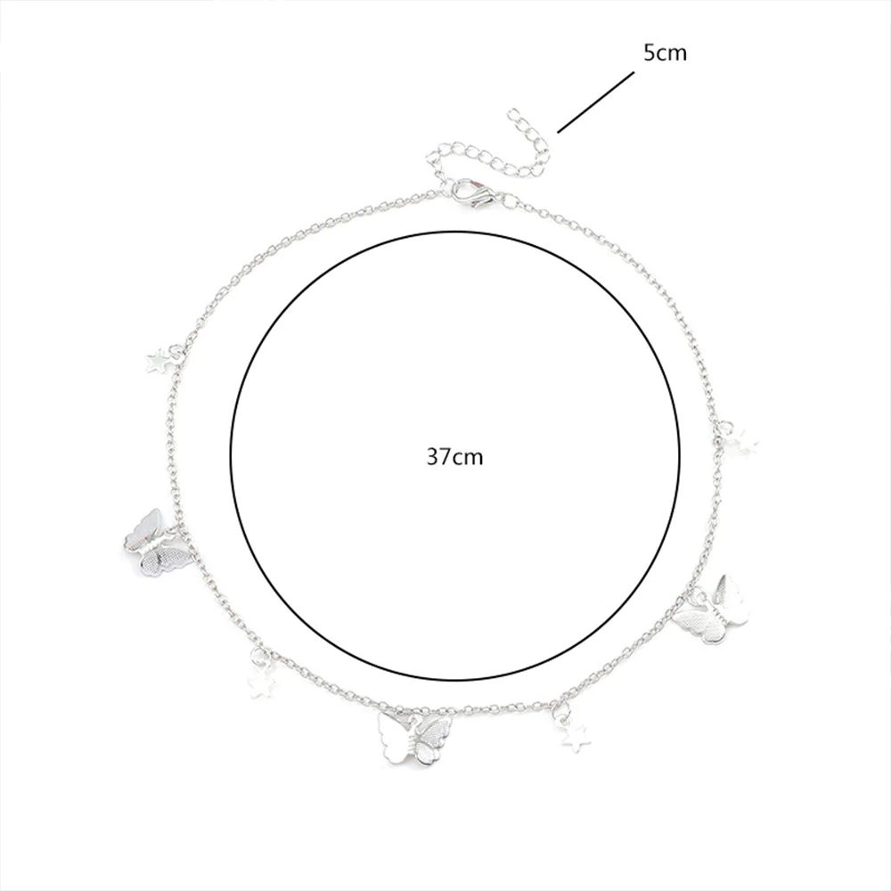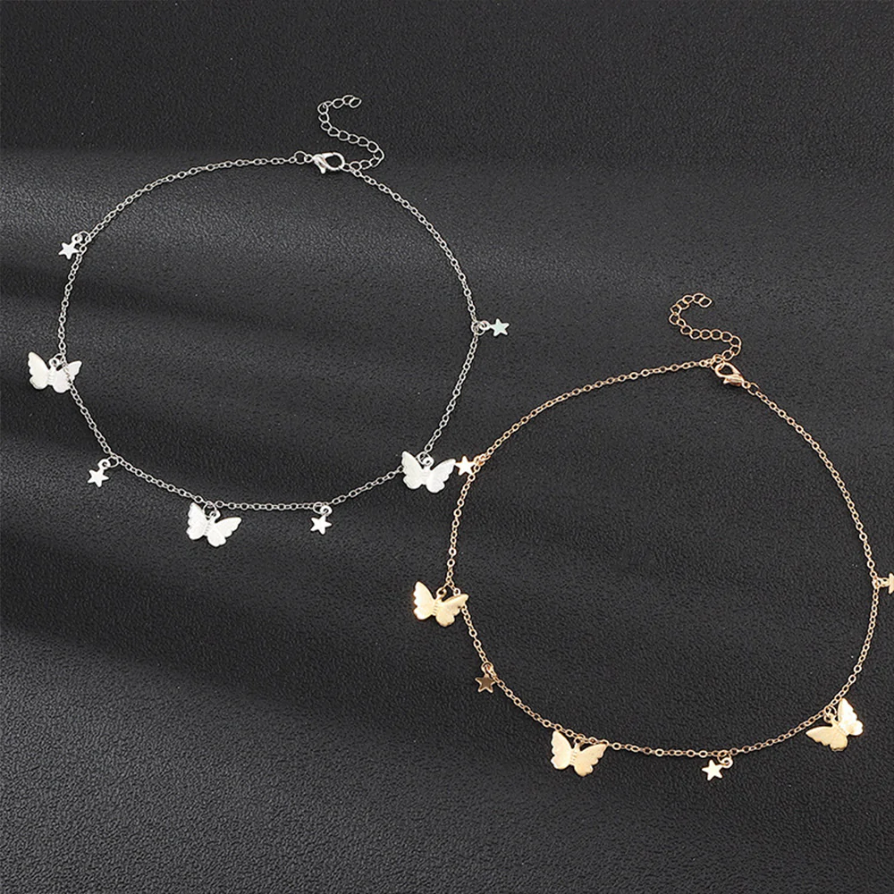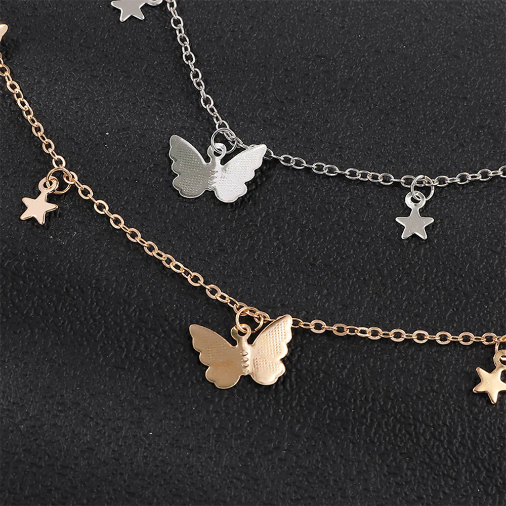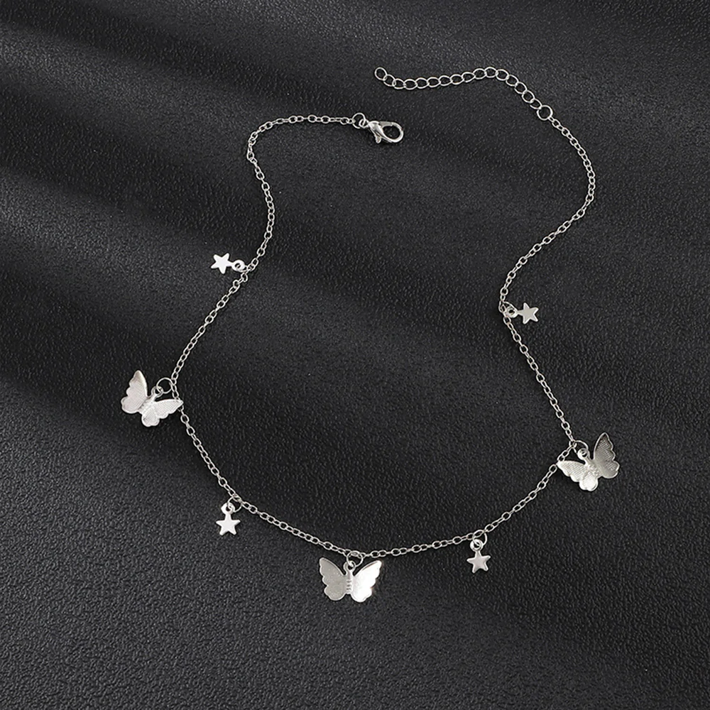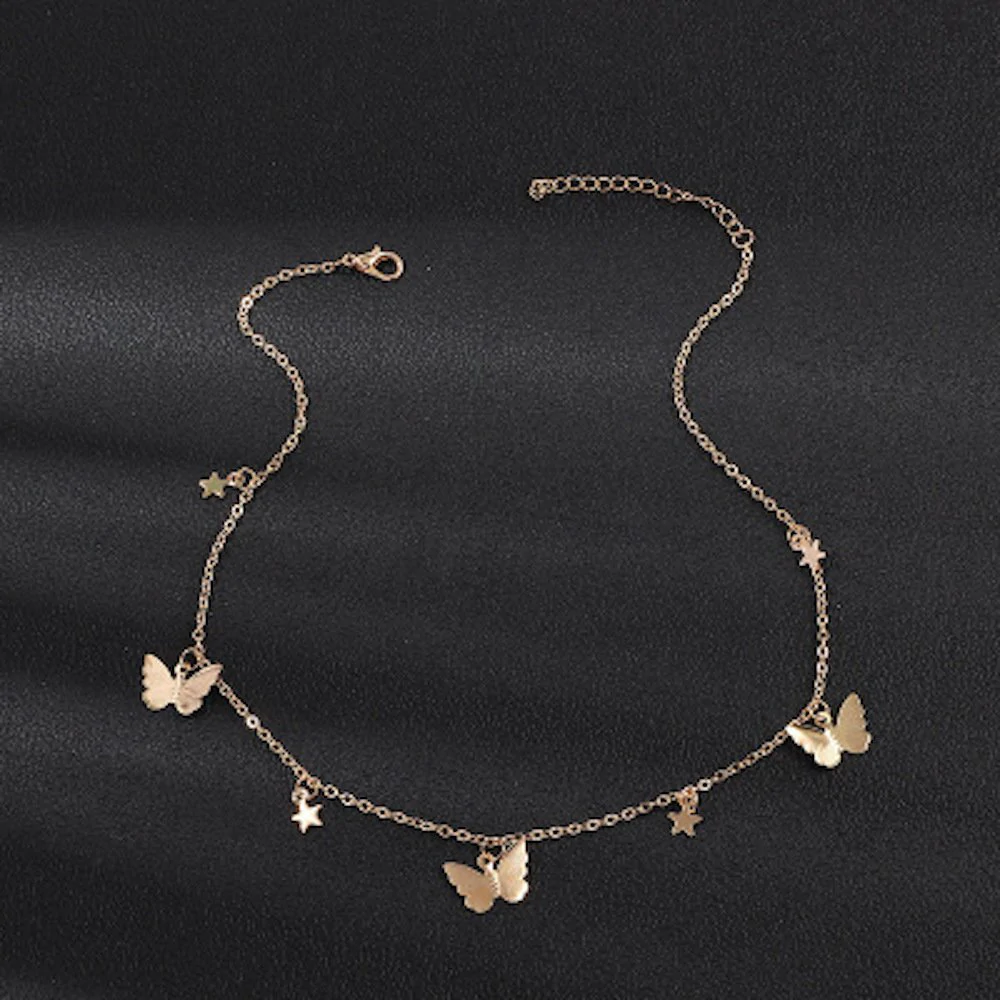 • A necklace made up of butterfly and star pendants. Gold and silver color available.