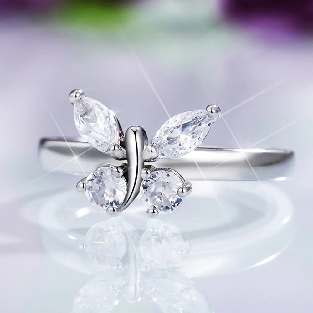 • 1*Simple Butterfly Zircon Ring