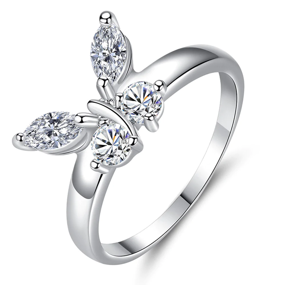 • Material: This silver butterfly ring was made of Brass.silver plated. inlaid with 3A cubic zirconia. Lead-Free. Nickel-Free. It is safety for allergy sufferer. would not turn your skin green.