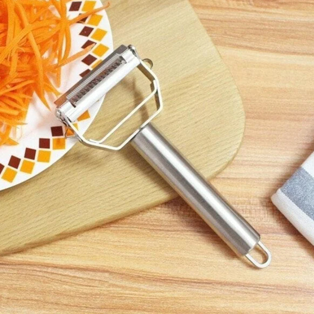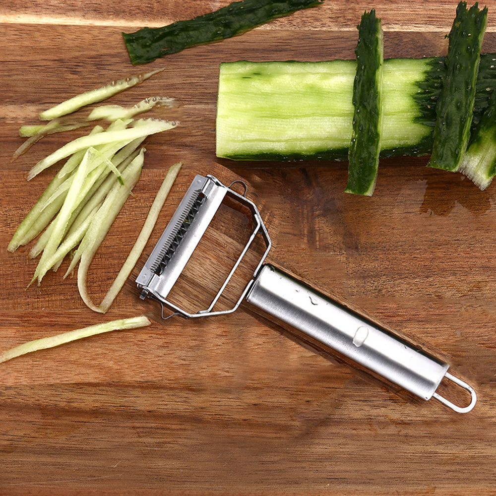 Dual stainless steel blades is ultra sharp for smooth and effortless peeling. You can easilyswitch from vegetable peeling to julienne cutting.