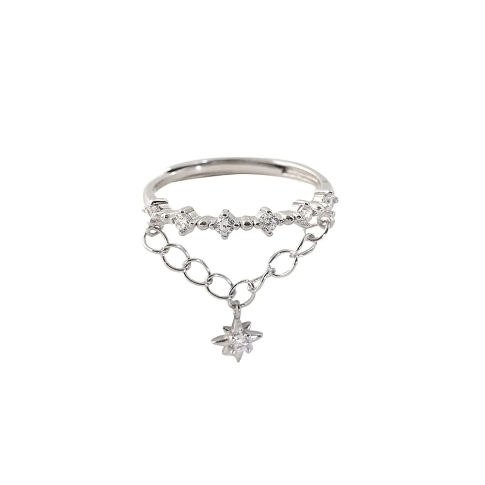 - Adjustable size: Star double chain open ring can be adjusted with an open design.fit for most fingers one size.