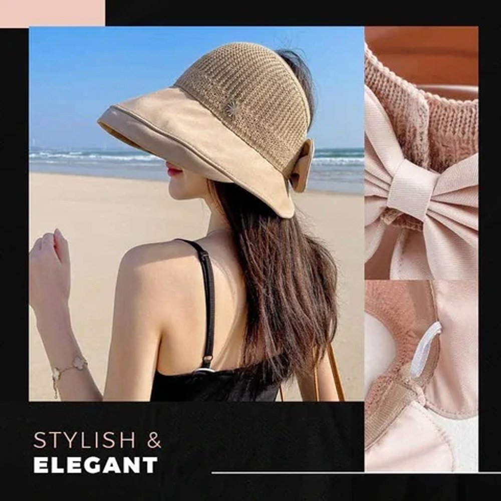 With its big. bold bow that neatly rolls up. this hat ispackable for on-the-go travel!