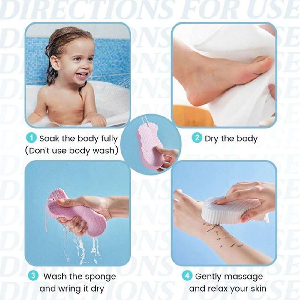 The super-soft bath sponge is used toclean stubborn horniness. dead skin. and stains.Perfect for children’s delicate skin. as well as for adults and seniors.