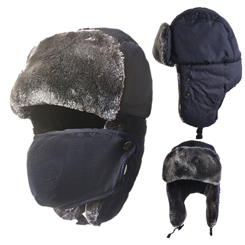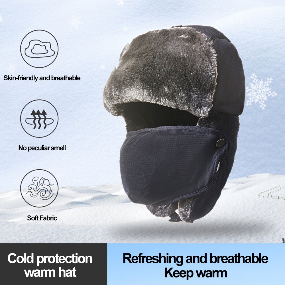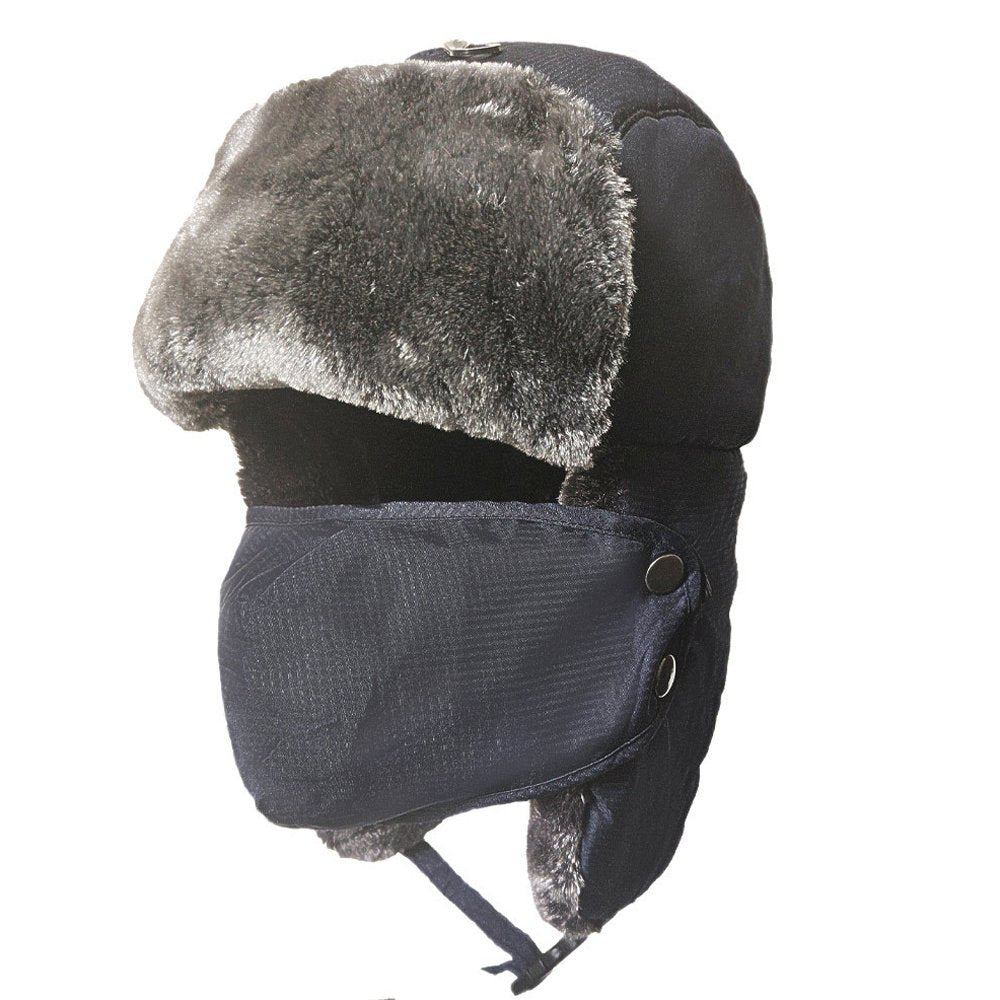 Thermal fur lined trapper hat with ear flaps and windproof face mouth cover. Keep warm this winter!