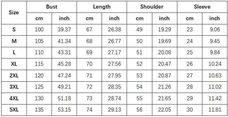- Size:S.M.L.XL.2XL.3XL.4XL.5XL