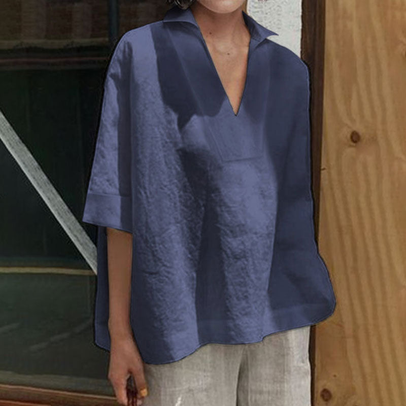 - This shirt is designed in solid color with a deep V-neck and lapel design to better frame your neck and make it easy to match your necklace.