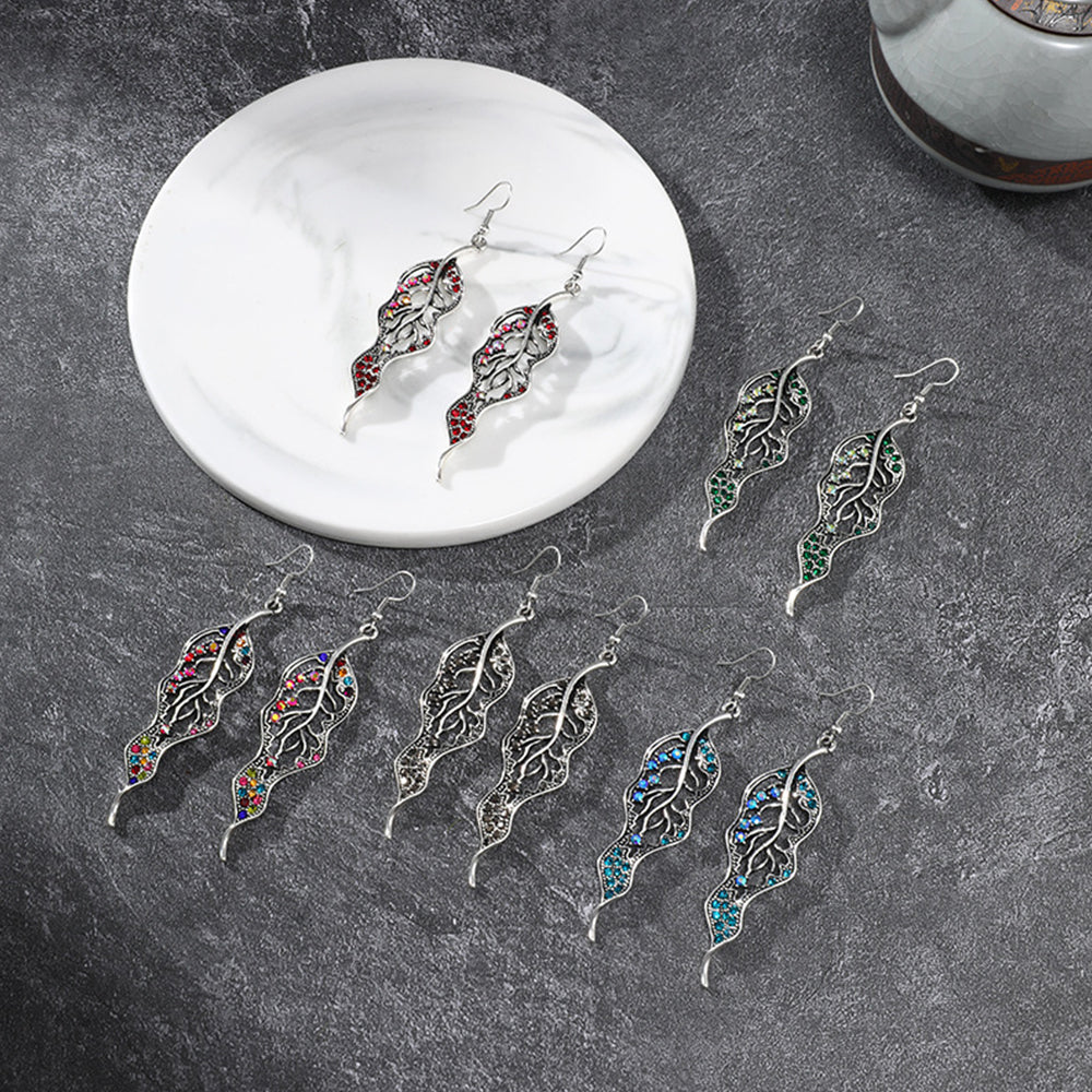 Shiny Zircon Leaf Earrings