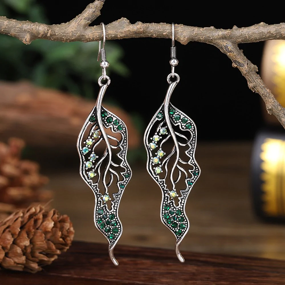 • 1 Pair* Vintage Rhinestone Leaf Earrings