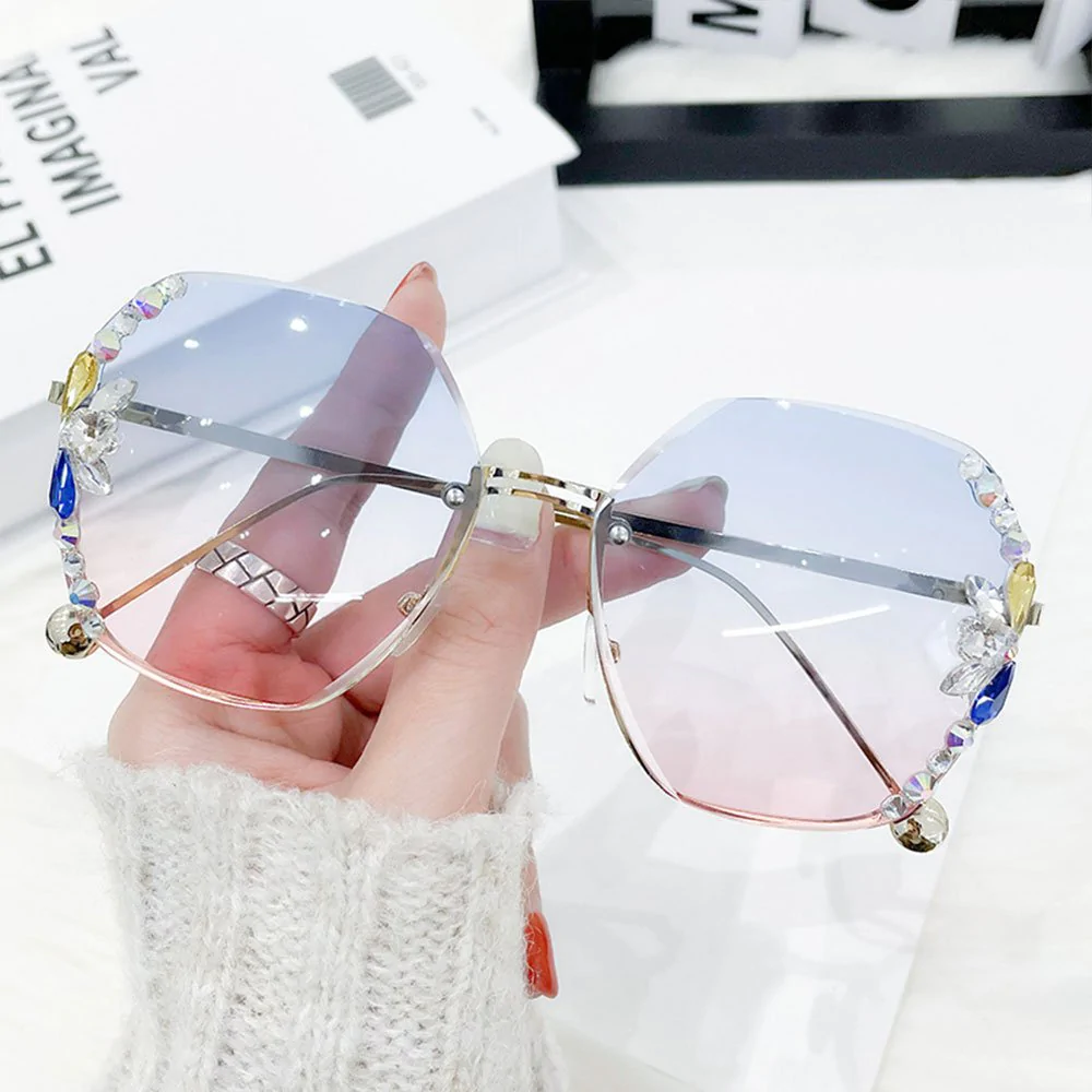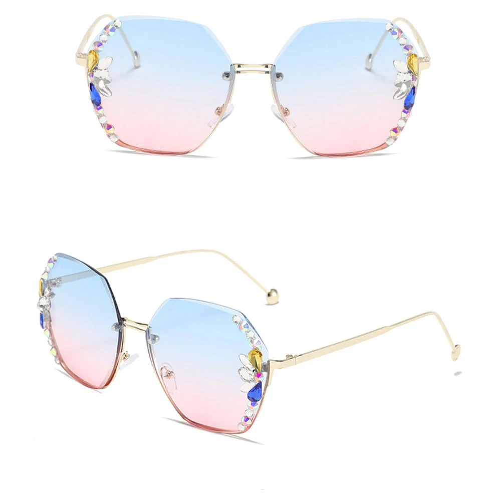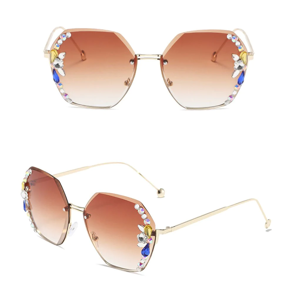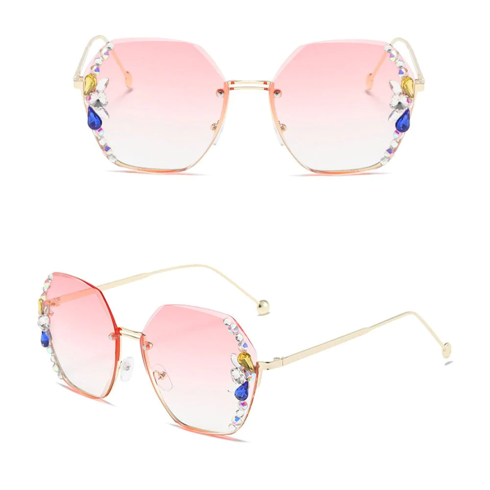 • 1* UV400 Rimless Retro Rhinestone Sunglasses
