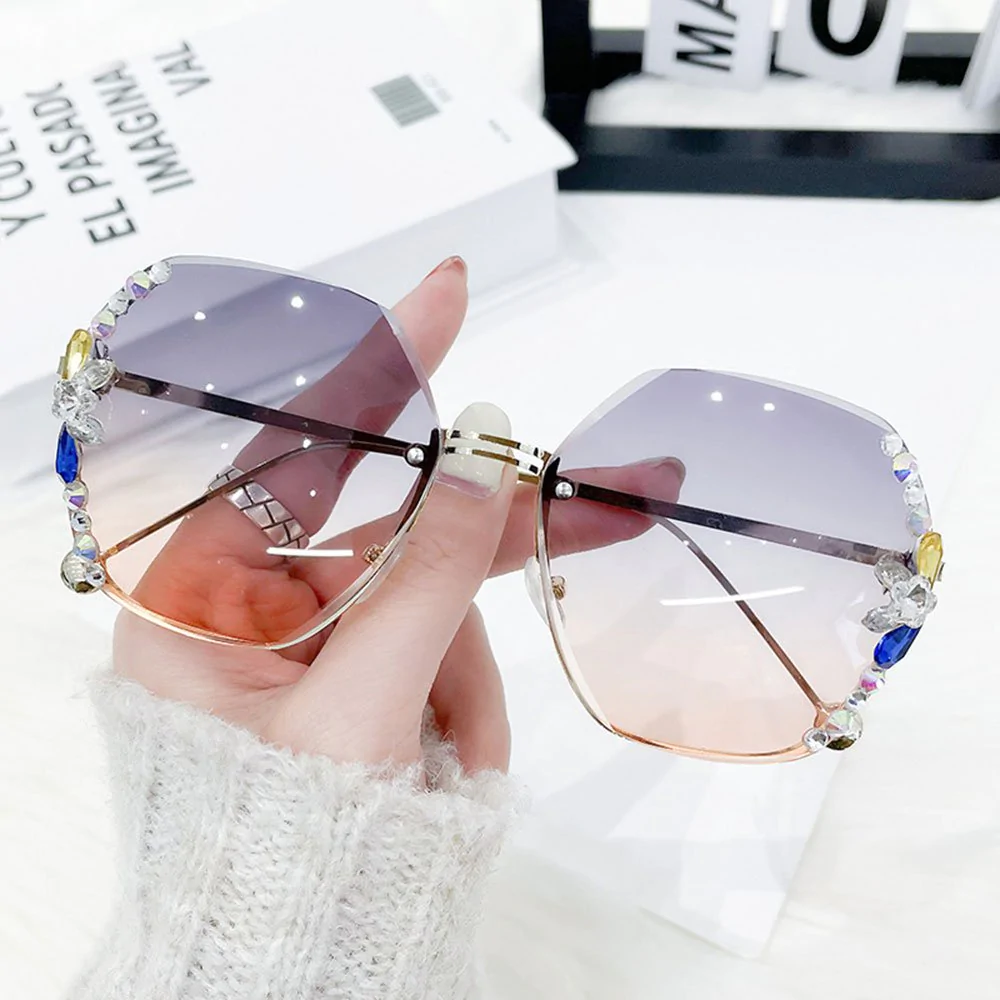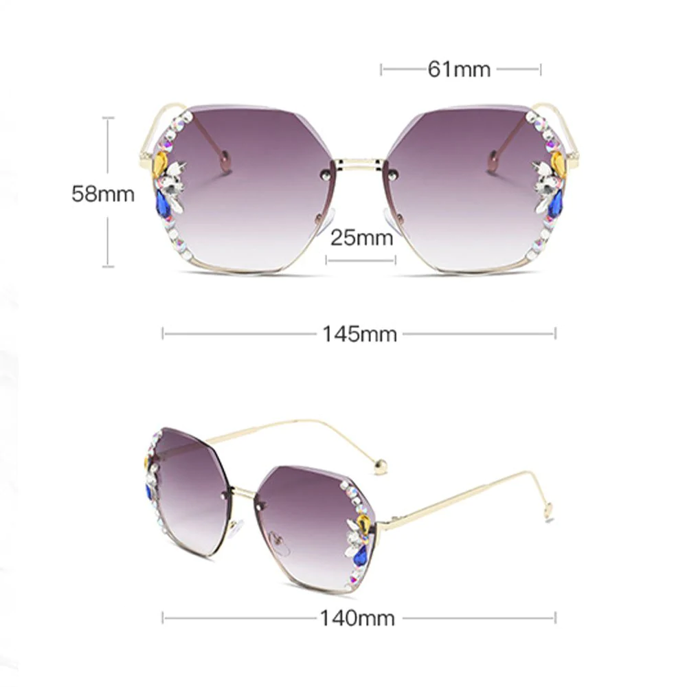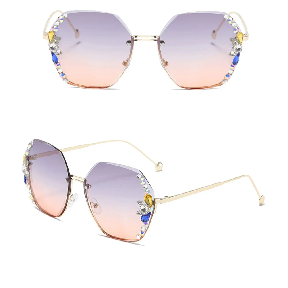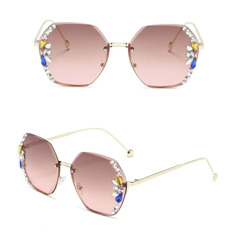 • 1* UV400 Rimless Retro Rhinestone Sunglasses