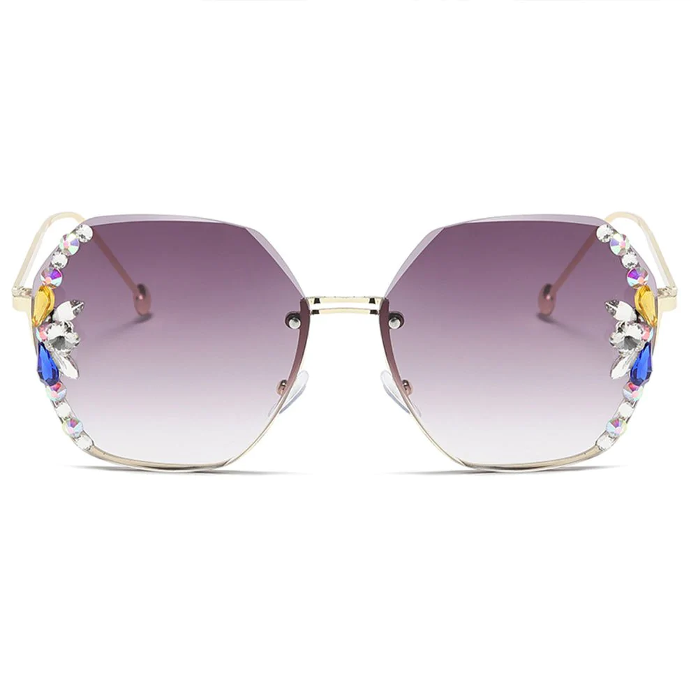 Women UV400 Rimless Retro Rhinestone Sunglasses
