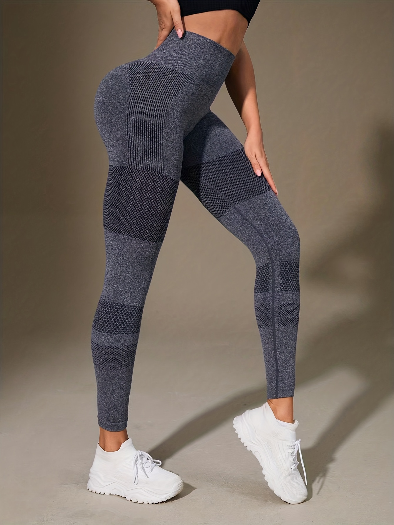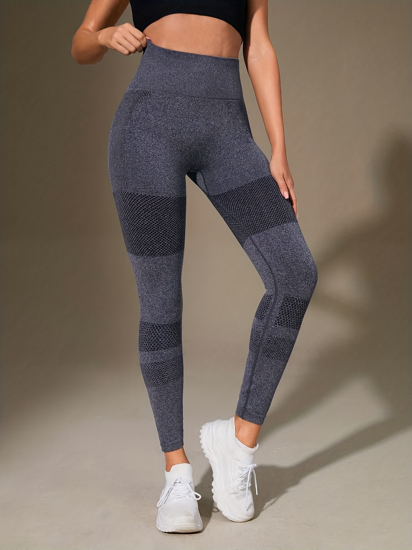 Solid Color Mesh Contrast Fitness Gym Sports Leggings, High Waist Yoga Workout Running Tight Pants, Women’s Activewear